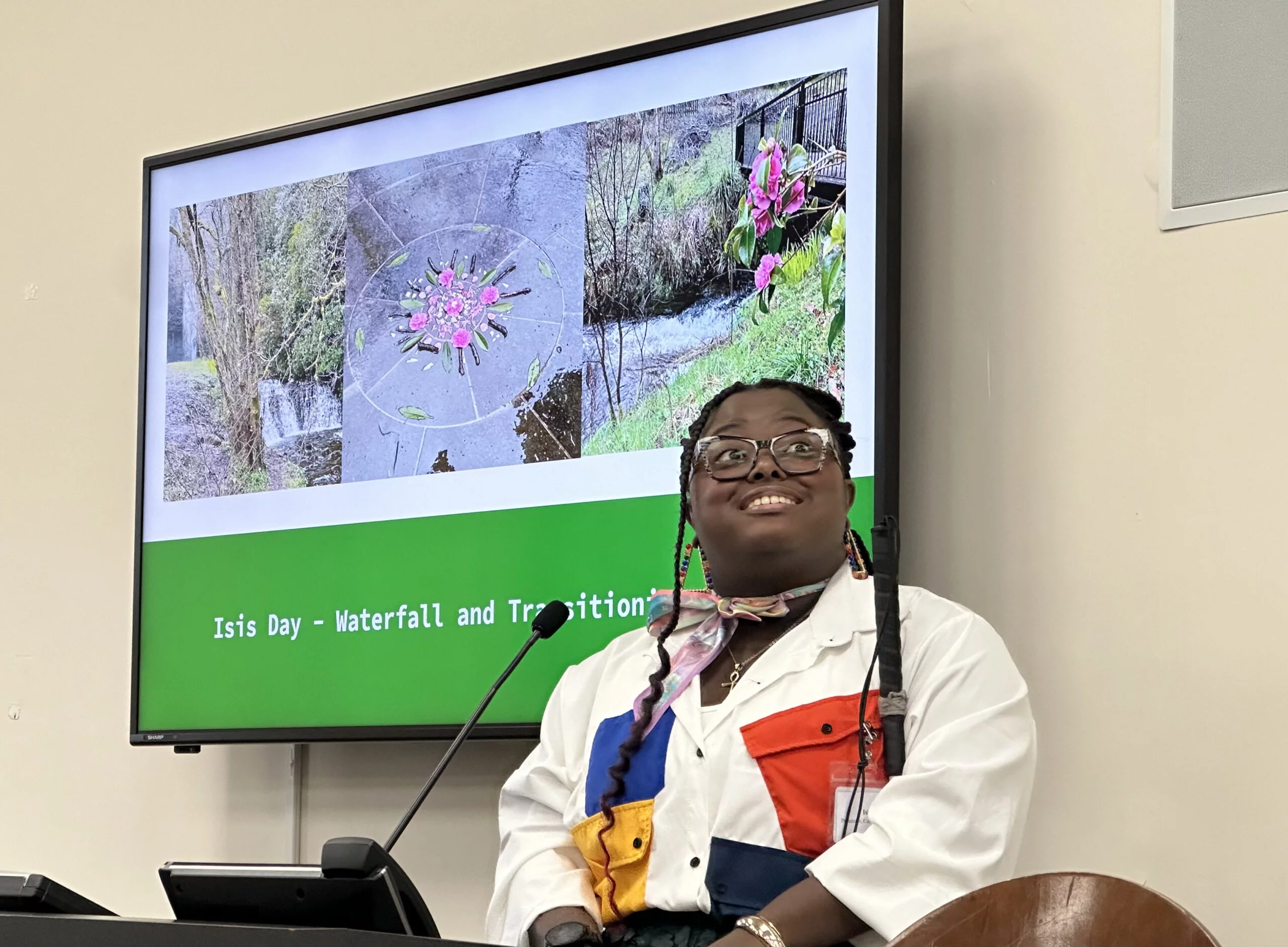 Dr. Dan Summer, Ph.D., LPAT, LAC, LCAT, ATR-BC, ATCS, Eymmy Angeles, Graduate Assistant, and Brigitt Yermakov, Graduate Assistant kicked off the event with an engaging keynote address, entitled Ecopoesis: The Arts Create an Ecological Civilization, followed by various speakers and presentations from students and professionals who shared their own insight into what it means to be a shapeshifter in adapting to our world.